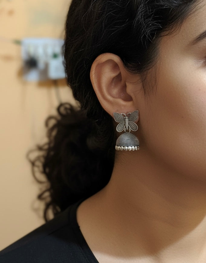 Elevate your everyday look with these beautifully crafted Antique Gold Plated Butterfly Jhumkas. Combining traditional jhumka charm with a subtle, trending butterfly motif, these earrings are the perfect lightweight accessory for your daily ethnic and fusion outfits.
